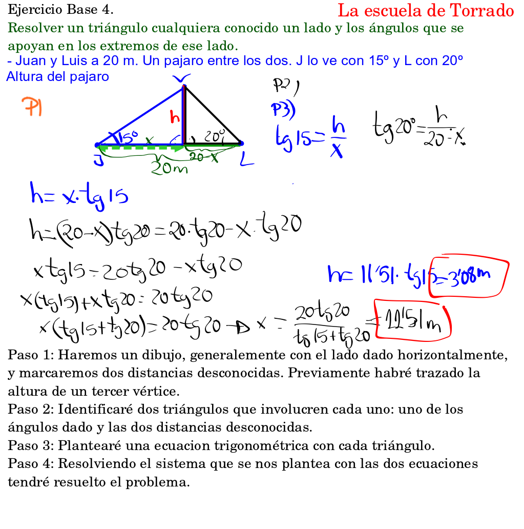 Paso 3: Plantearé una ecuación trigonométrica con cada triángulo.