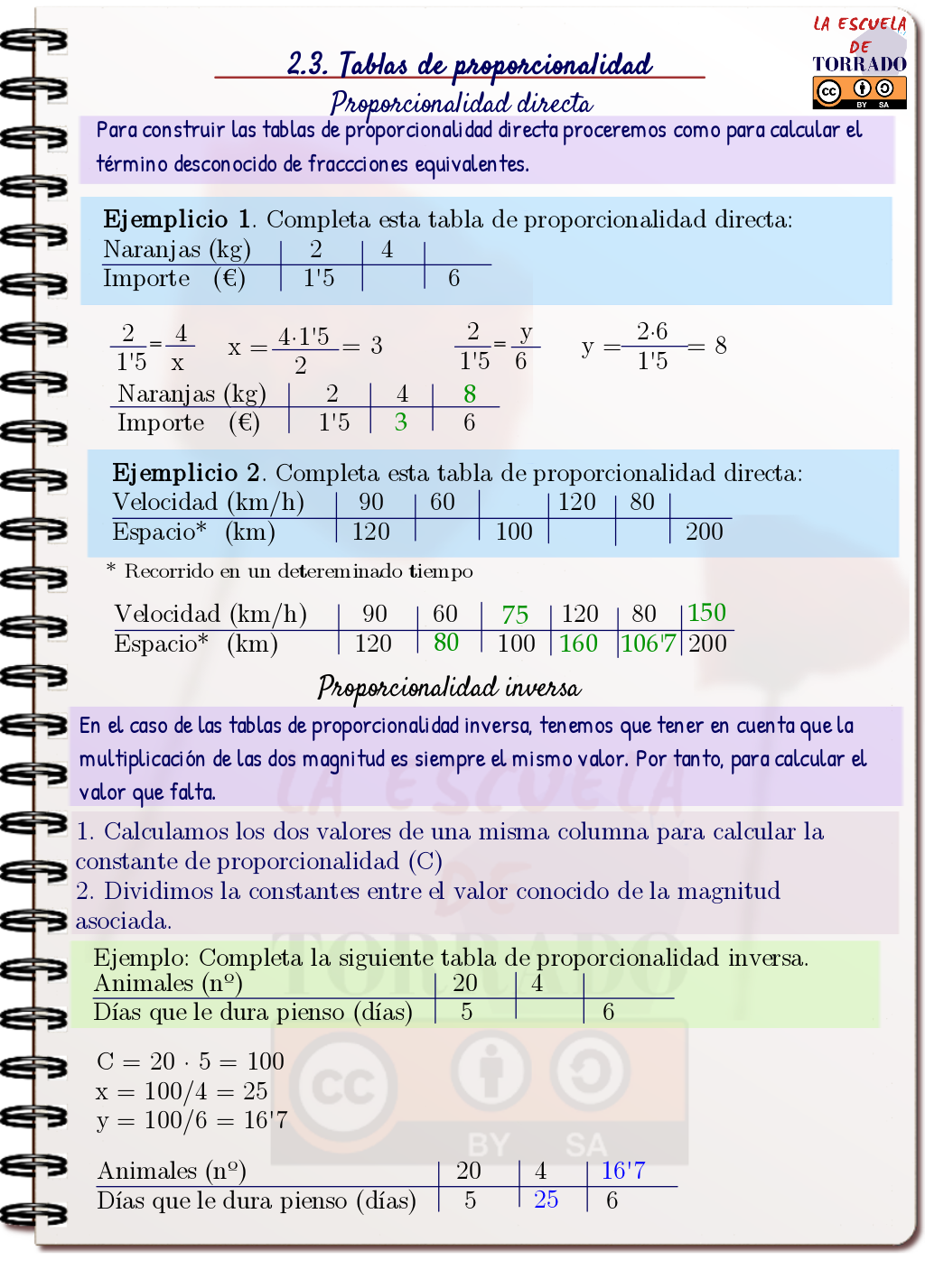 2.3. Tablas de proporcionalidad