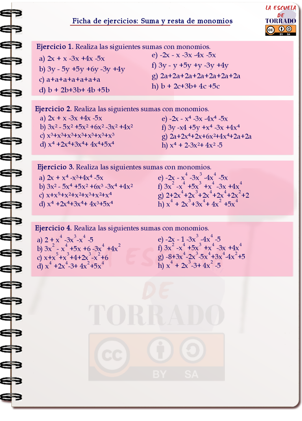 Suma y resta de monomios