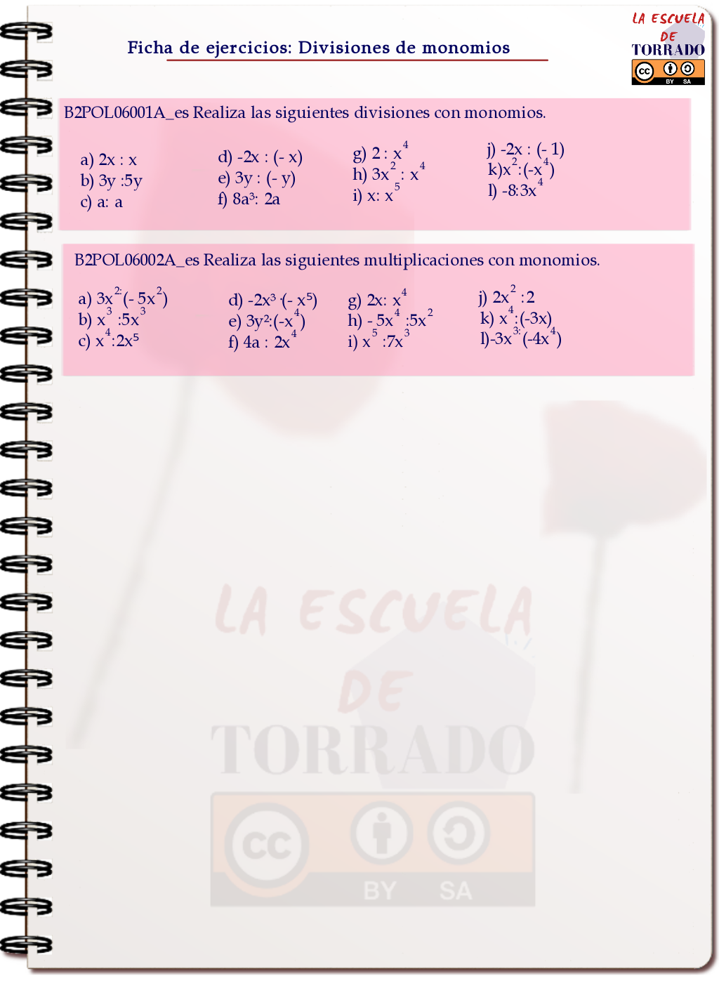 Divisiones de monomios