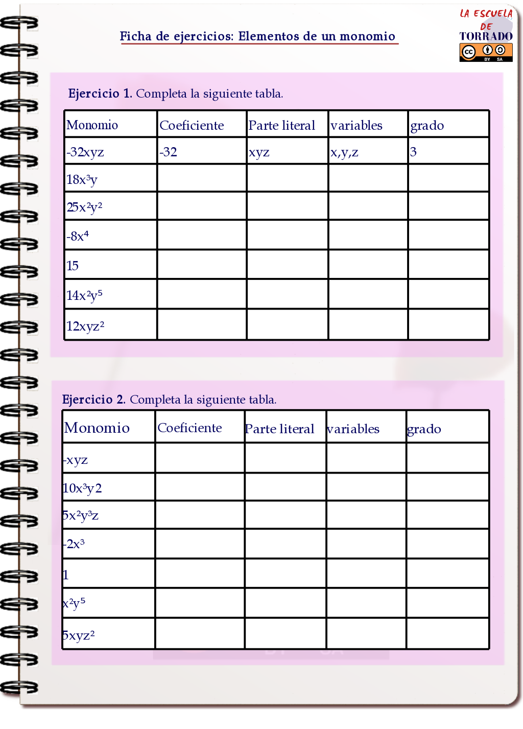 Elementos de un monomio